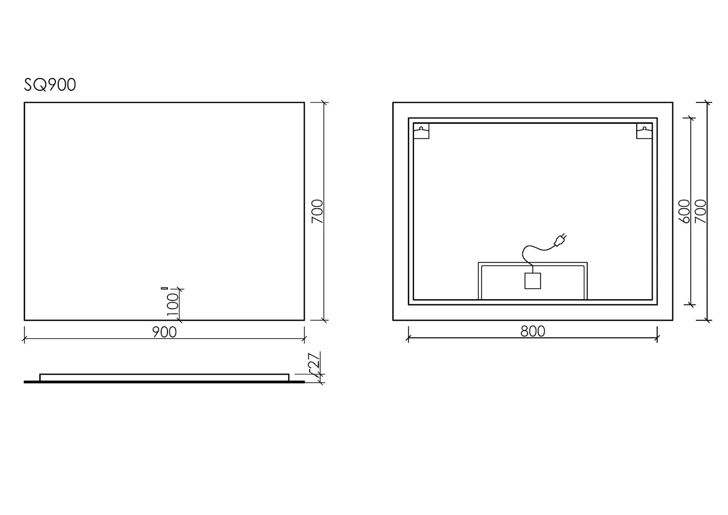 Зеркало Sancos Square 2.0 SQ2.900 90х70 см, с LED подсветкой