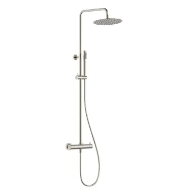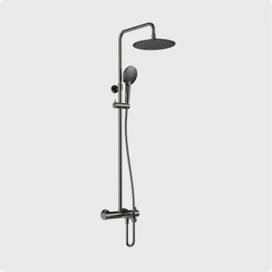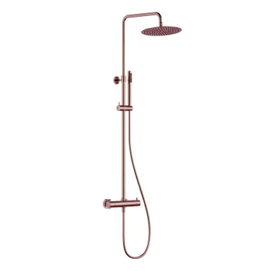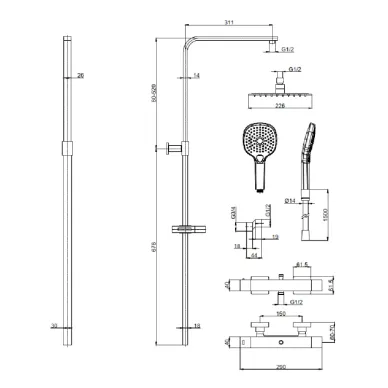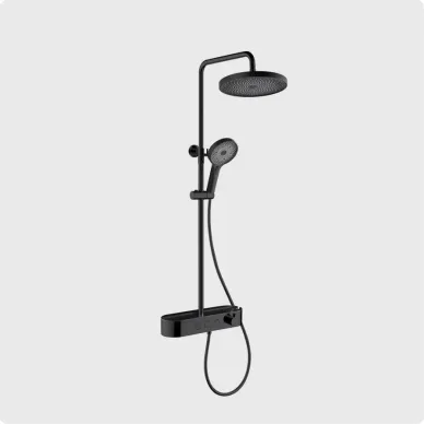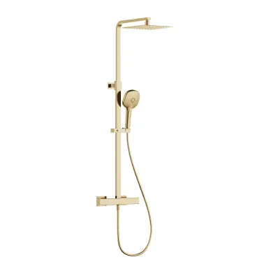 - Комплектация: термостат, шланг, держатель, лейка, стойка, верхний душ