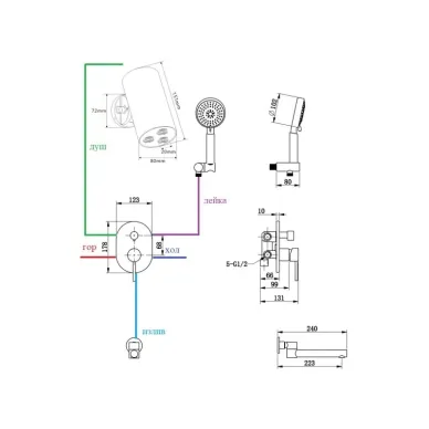 - Комплектация: смеситель, кронштейн, шланг, держатель, лейка, стойка