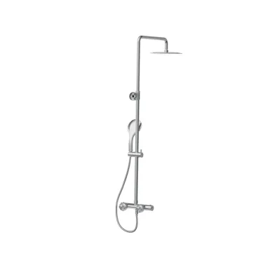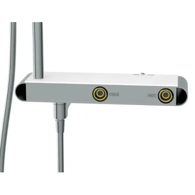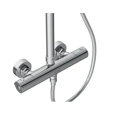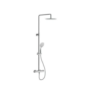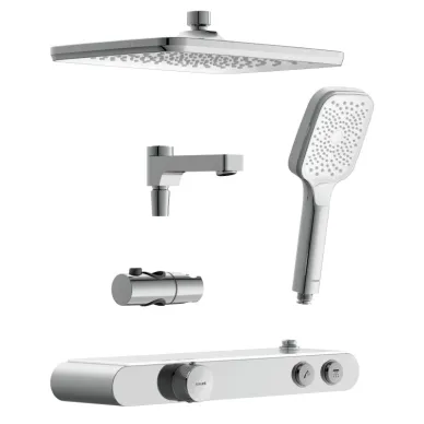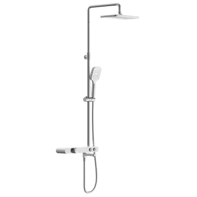 - Комплектация: термостат, шланг, держатель, лейка, стойка, верхний душ