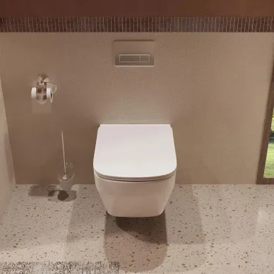- Особенности: без ободка (для легкой очистки), ультратонкое сиденье Slim, бесшумный смыв Торнадо