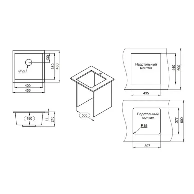 - Монтаж: встраиваемый сверху, встраиваемый снизу